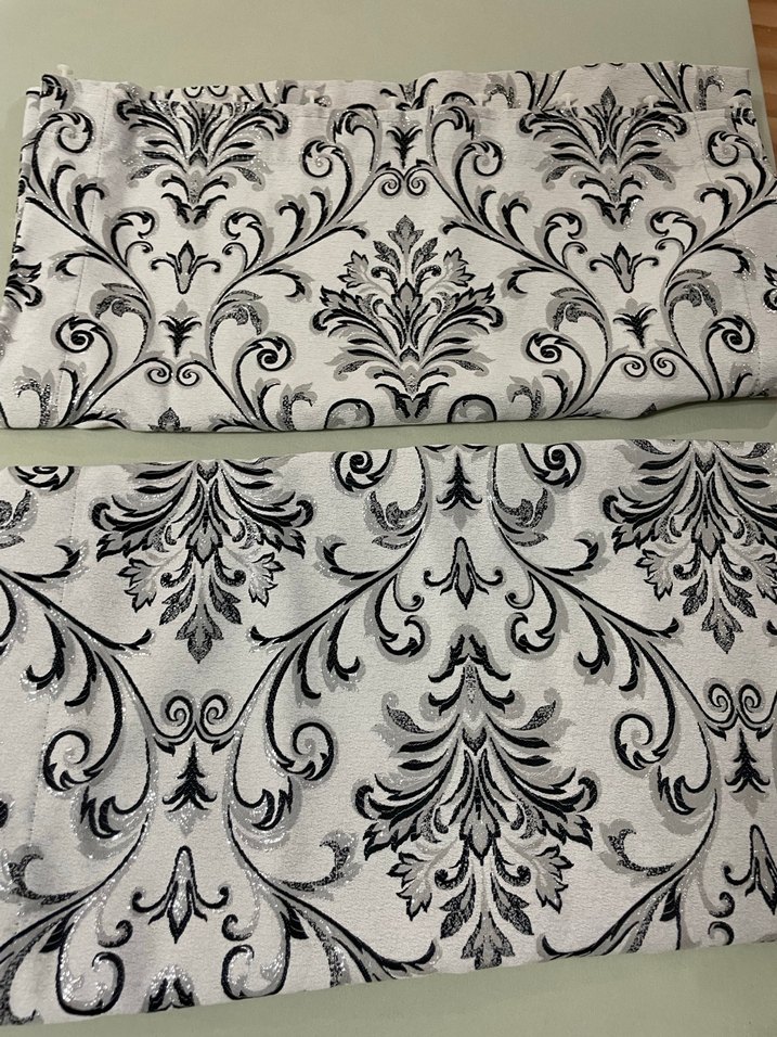 Gri tonlarda klasik desenlere sahip, geleneksel tarzda perde. Her odaya zarif bir dokunuş katar.