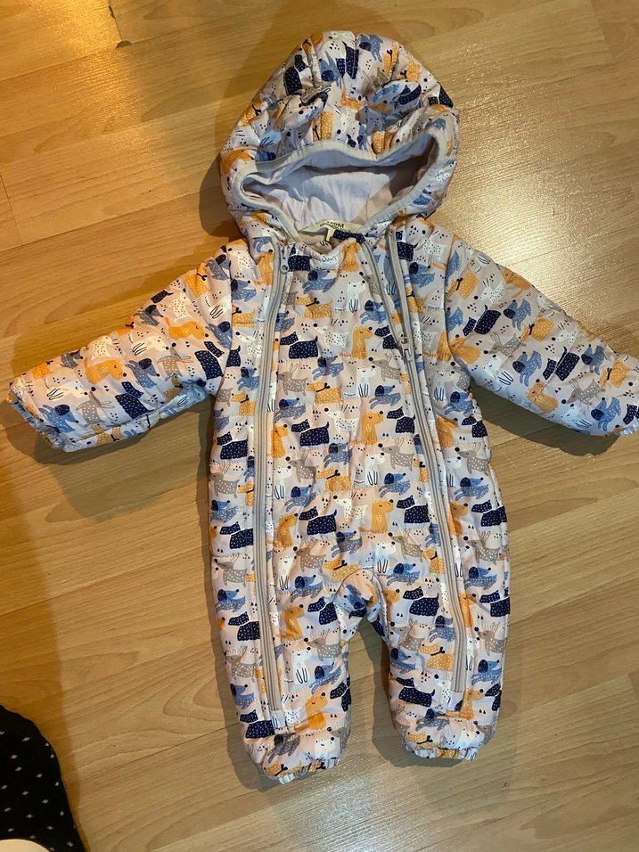 Kürklü detaylı, kapüşonlu gri bebek tulumu, yumuşak ve sıcak kumaştan, çift fermuarlı ve desenli tasarıma sahiptir. ❄️