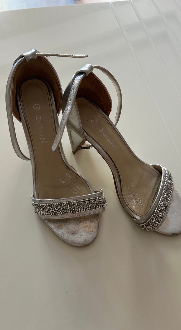 Gri Desenli Metal Tokalı Topuklu Ayakkabı