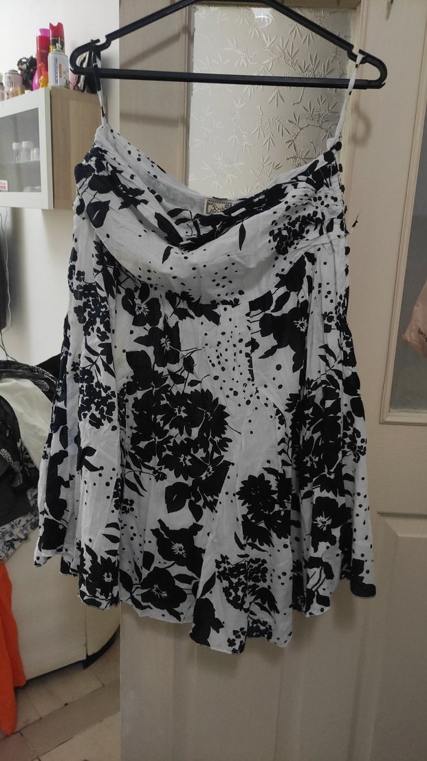 Gri renkte, desenli, bol kesim ve drapeli midi uzunlukta hamile eteği. Yumuşak sentetik kumaştan, bohem tarzına uygun.