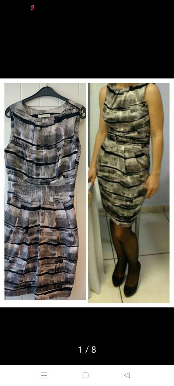 Bu gri midi elbise, kolsuz ve straplez yakaya sahip olup, çağdaş bağlama desenine sahiptir. Sentetik kumaştan üretilmiş, ofis kullanımı için uygundur.