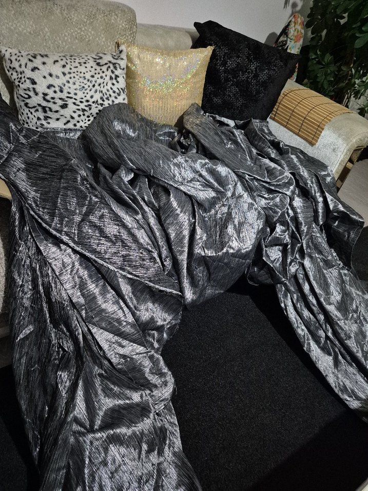 Gri renkli, desenli ve modern simli fon perde Kumaşı hafif parlak ve yumuşaktır. ️en 345cm boy 270cm sorunsuz