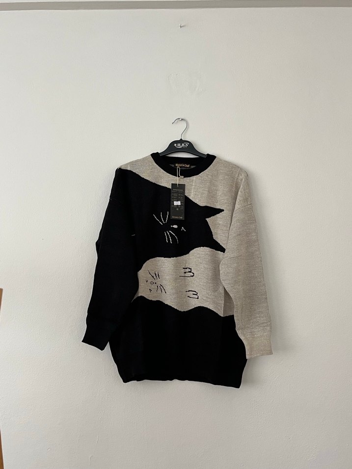 Teiko kumaştan, uzun kollu ve bisiklet yaka, bol kesim kadın triko. Günlük rahat kullanıma uygun baskılı desene sahiptir.