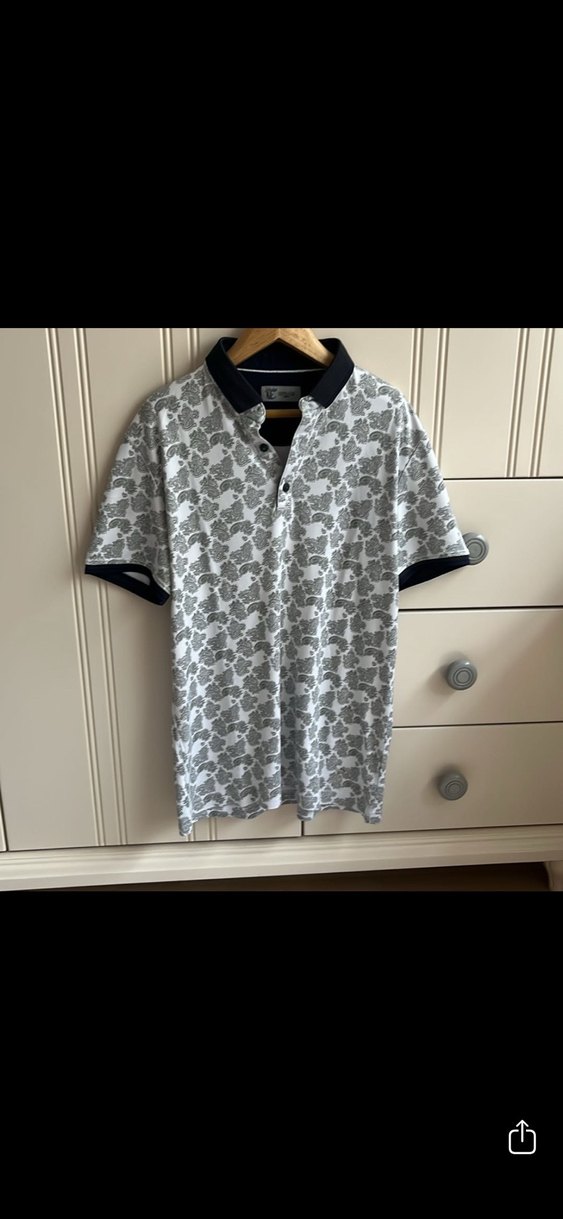 Pamuklu, düğmeli yakalı gri desenli erkek polo tişört, kısa kollu ve bol kesim. Siyah yakası ve kol ucu detaylarıyla günlük kullanıma uygun. 13 14 yaş uyumlu kullanılmadı