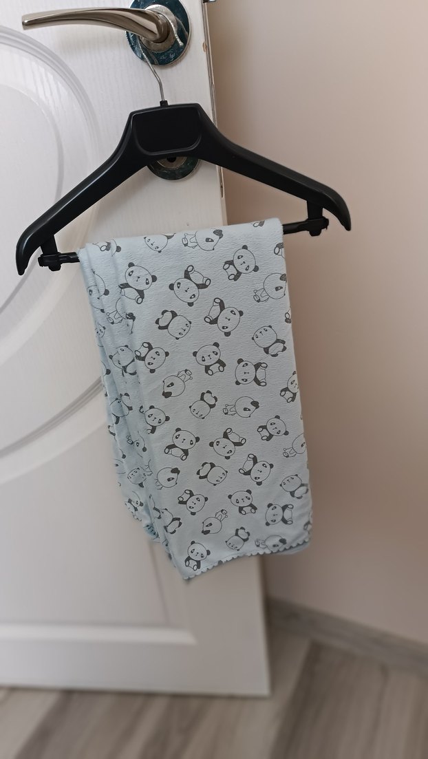 Gri renkte, sevimli panda desenleriyle baskılı, yumuşak kumaştan üretilmiş street wear tarzı battaniye