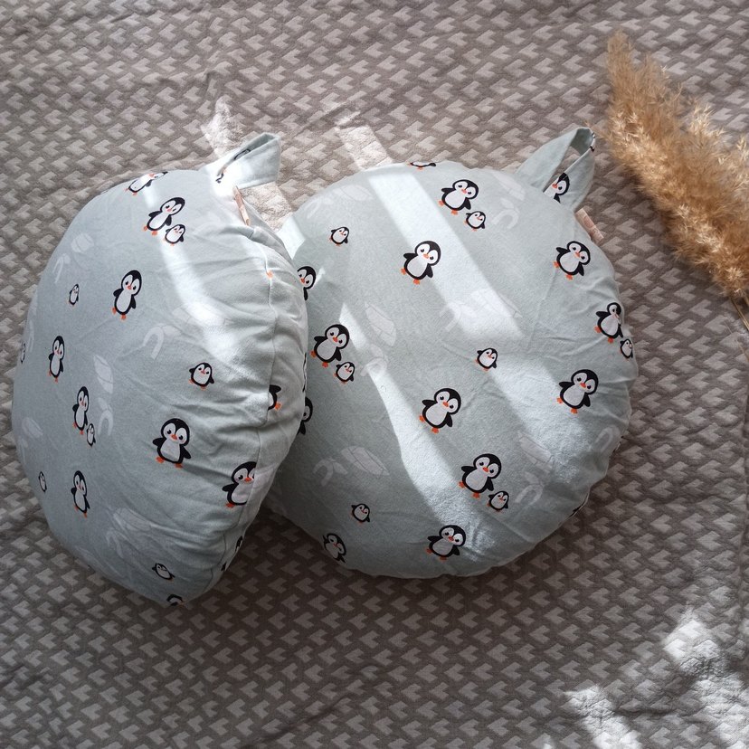 Yumuşak polar kumaştan gri, penguen desenli hamilelik ve emzirme yastığıdır. Anneler için rahat destek sağlar yada çocuk minder için uygun, çapı 35cm