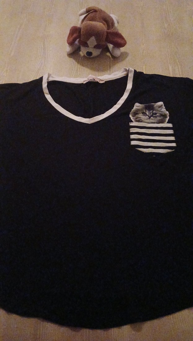 Pamuklu, kısa kollu, bisiklet yaka ve bol kesim hamile tişörtü. Cepte baskılı kedi deseni ve düğme detayları bulunur, günlük sokak stiline uygundur.