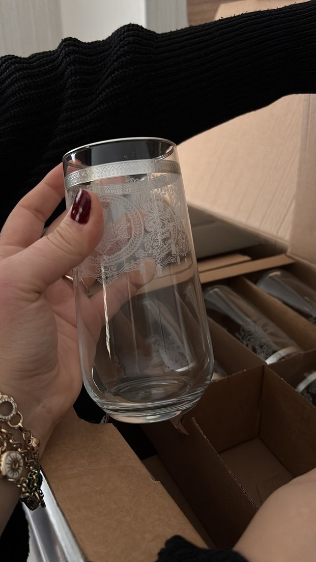 Üst kısmında ince gri desen bulunan şeffaf su bardağı, hafif yapısı ile günlük kullanıma uygundur. Sıfır kutulu