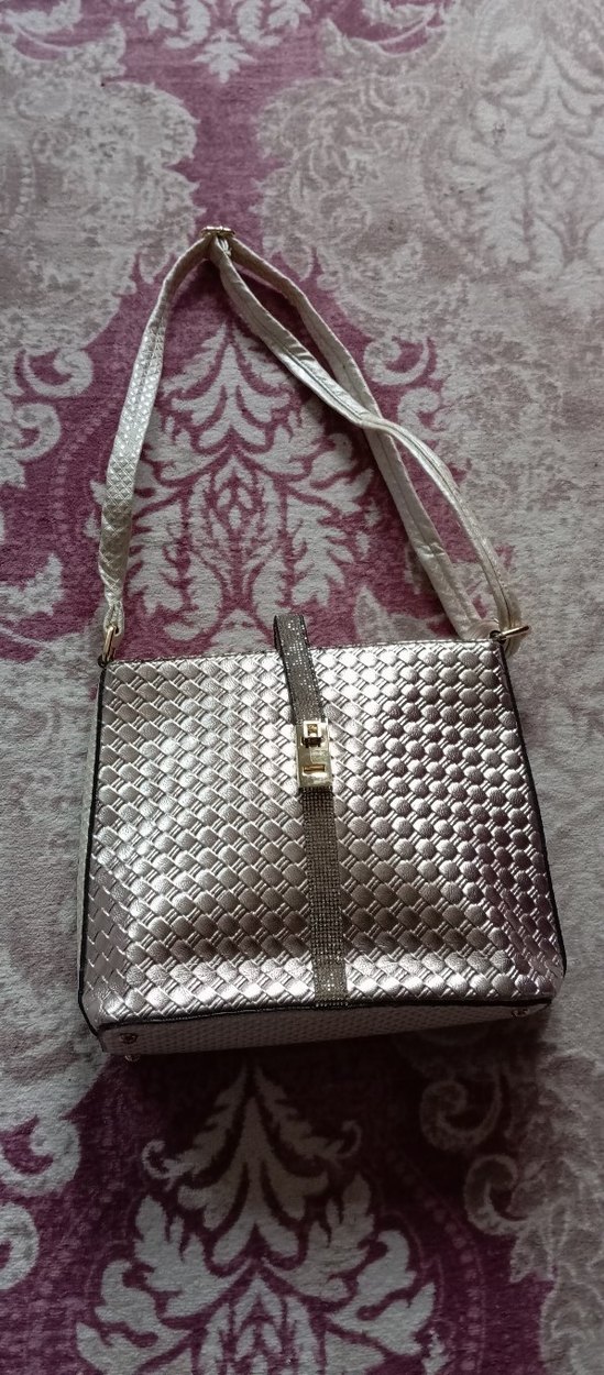 Gri renkli, yılan desenli ve tokalı askıya sahip kadın çantası. Günlük kullanıma uygun çağdaş tasarım. yeni bir veya iki kez kullanildi