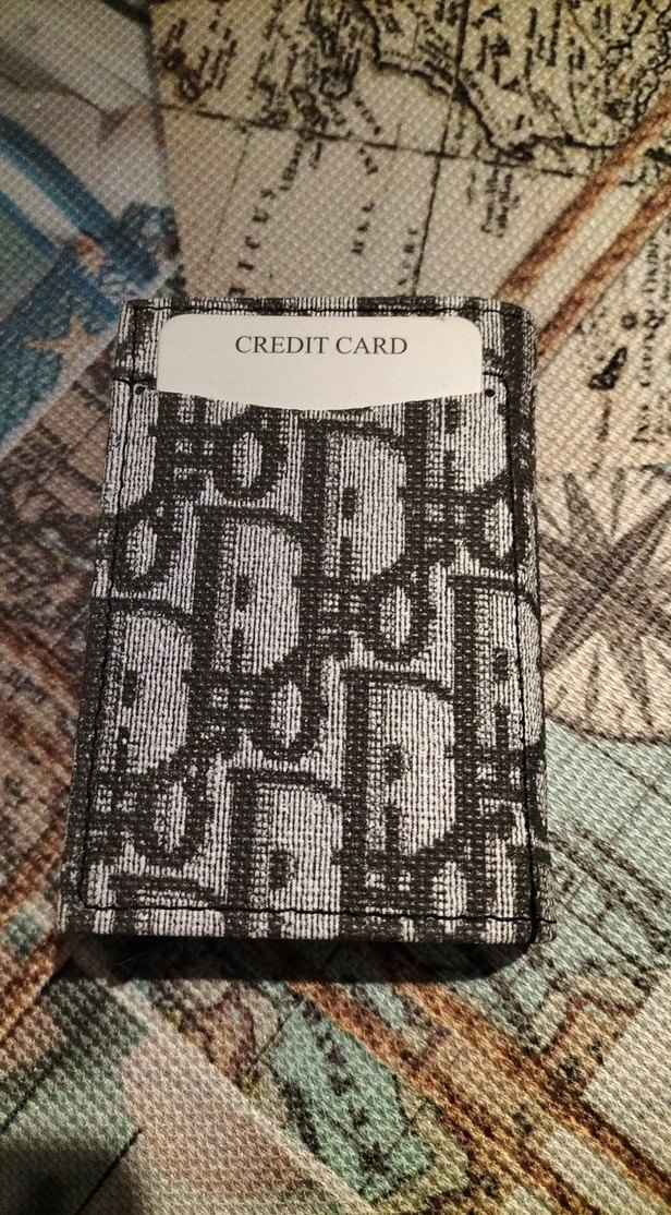 Gri renkli, desenli sentetik kumaştan yapılmış ünisex cüzdanı. "CREDIT CARD" yazılı kart bölmesi bulunur. Günlük kullanıma uygundur.