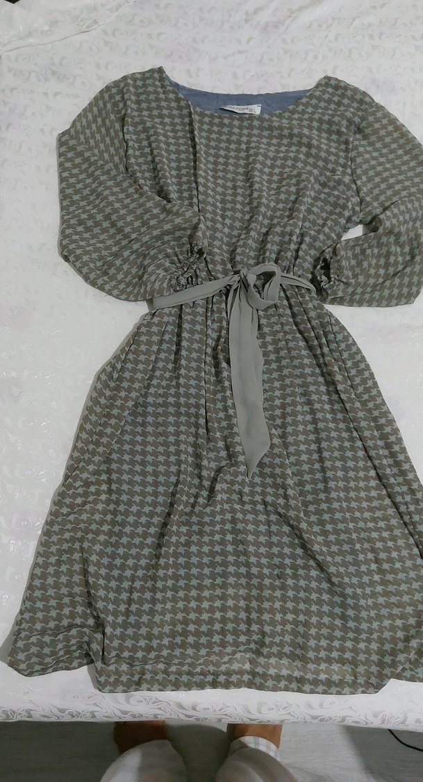 Geniş kesim, kemerli ve askılı kollu uzun hamile elbisesi. Yuvarlak yakalı, desenli kumaştan günlük kullanıma uygun.ense kısmında mini bir delik var