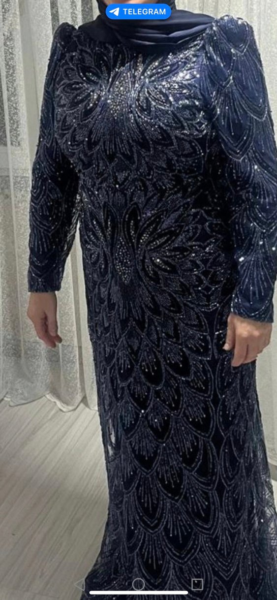 Dar kesim, uzun kollu gri abiye elbise, boncuk işlemeli desenlere sahiptir. V yaka ve gotik tarzıyla düğünler için uygundur.