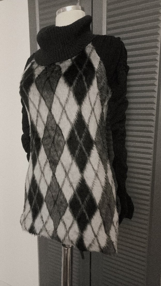 Gri desenli, suni kürk detaylı uzun kollu, boğazlı, fitted kesim kadın bluz. Gotik ve trend bir tarz sunar.