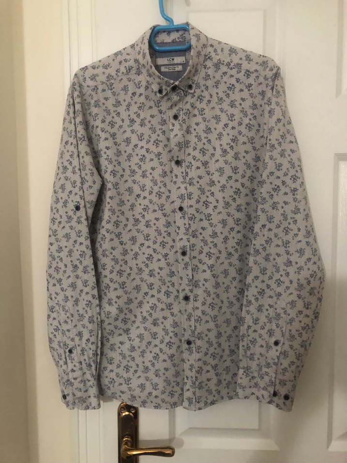 Gri renkli, uzun kollu, düğmeli erkek gömleği. Pamuk kumaştan üretilmiş, normal kesim ve desenli. Günlük ve sokak stiline uygun.