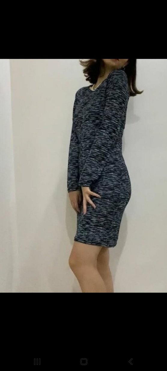 Gri Desenli Uzun Kollu Triko Elbise çok şık 36 38 beden