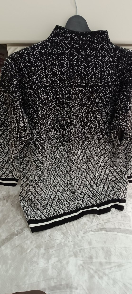 Gri renkli, sentetik kumaştan örülmüş, desenli uzun kollu ve salaş kesim kadın kazak. Rahat ve modern tarzıyla günlük kullanıma uygundur.