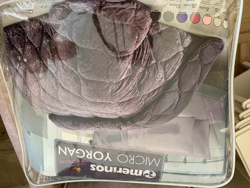 Gri renkte, desenli ve yumuşak dokulu yatak örtüsü, yatak odanıza zarif bir dokunuş katar. ️