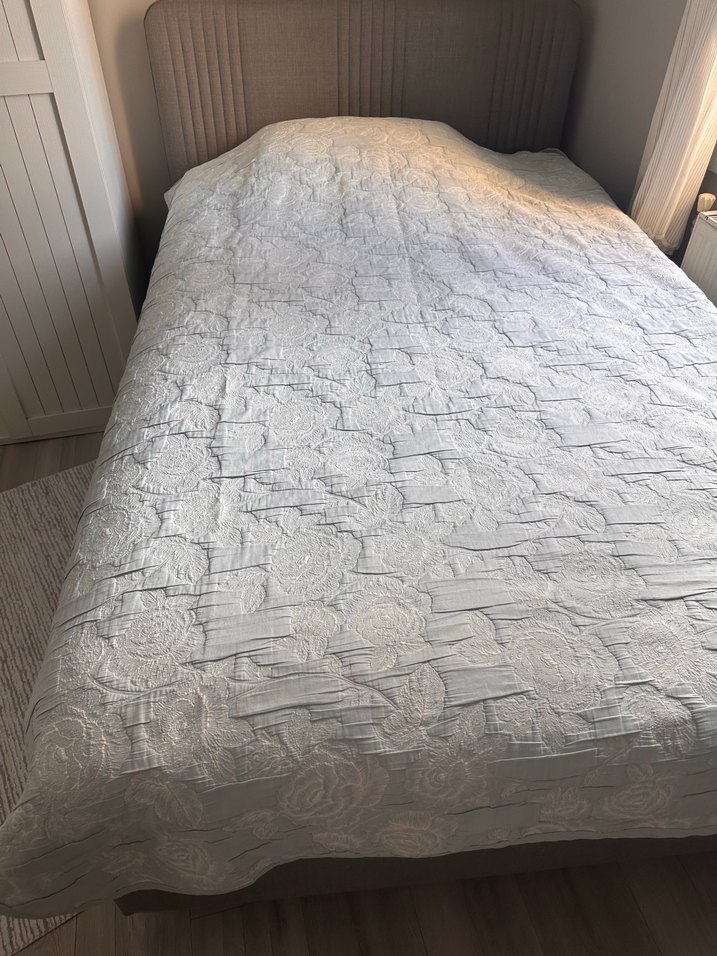 2 taraflı 2 renkli tek kişilik Karaca Home yatak örtüsü 2 adet çocuklarımın yataklarını büyük aldığım için küçük geliyor eni 1.45 boyu 2.40 fiyat 2 adet fiyatıdır