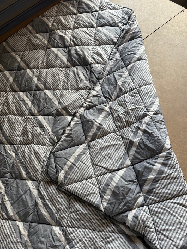 Yatak için yumuşak ve rahat gri renkli, hafif çizgili dokulu yatak örtüsü. ️