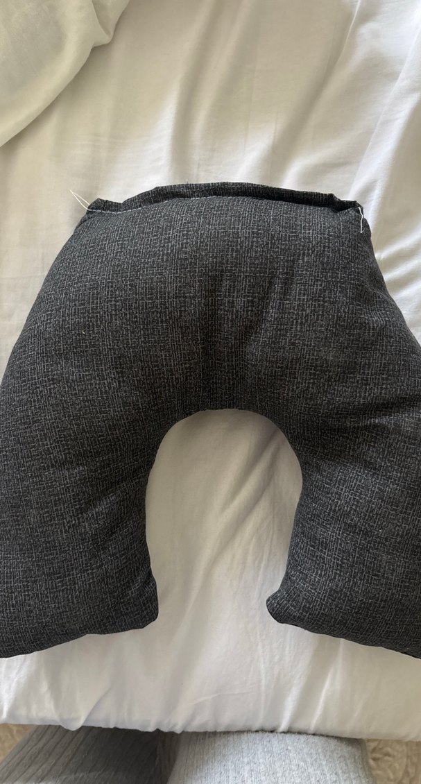 Gri, desensiz ve yumuşak dokulu kumaştan yapılmış U şeklinde emzirme ve hamile yastığıdır.