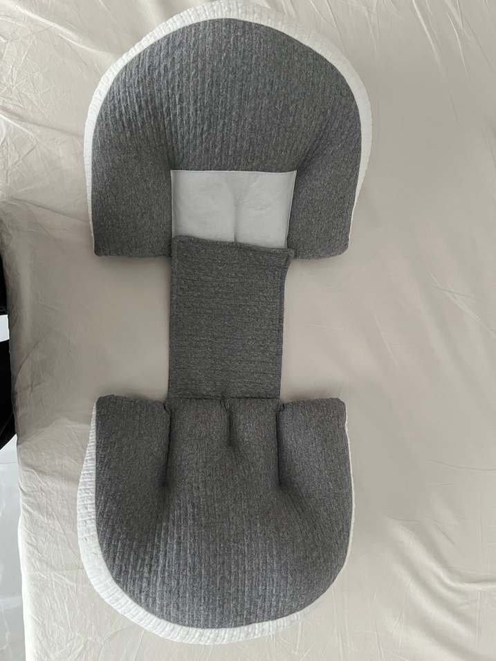Gri renkte, desensiz kumaştan yapılmış hamile ve emzirme yastığı, konfor ve destek sağlar. Hiç kullanmadım, yıkanılabilir. E bebekten aldım.