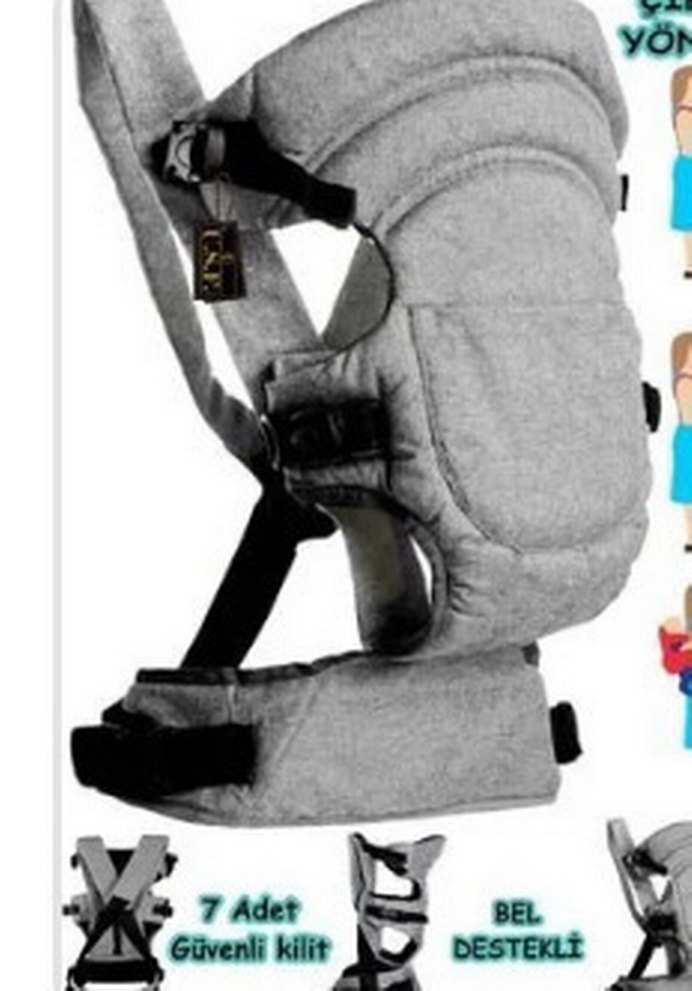 Gri renkli, bel destekli ve 7 adet güvenli kilitli bebek taşıyıcı. Rahat ve güvenli kullanım sağlar. Sorunsuzdur yeni gibi