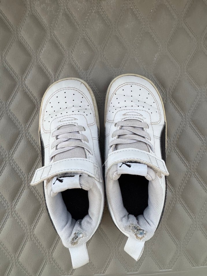 Gri detaylı beyaz erkek çocuk spor ayakkabısı, cırt cırtlı ve kauçuk tabanlıdır, trend sokak giyimi için uygundur. Orijinaldir