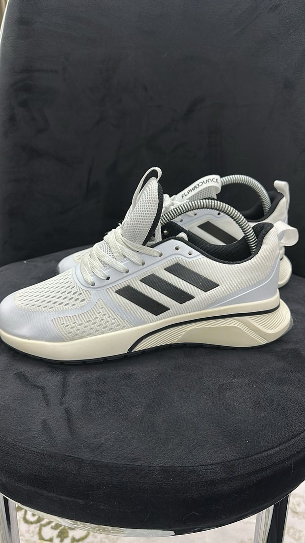Gri detaylı beyaz erkek spor ayakkabı, bağcıklı tasarımı ve kauçuk tabanıyla sokak stili ve spor için uygundur. Adidas Orjinal ithal 2 adet 40 1adet 43.5