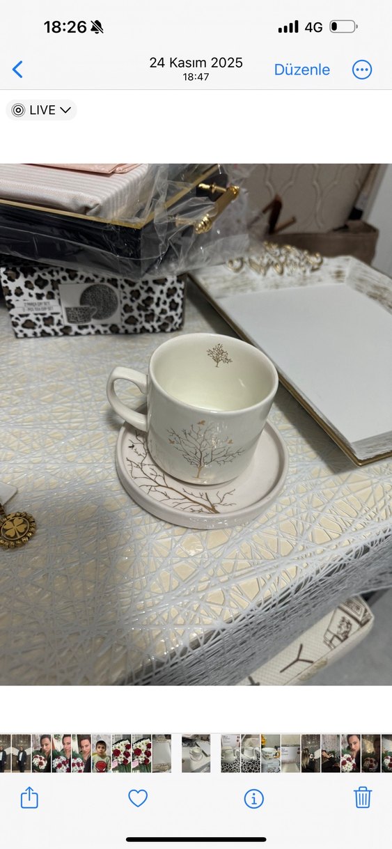 Gri Detaylı Beyaz Fincan ve Tabak