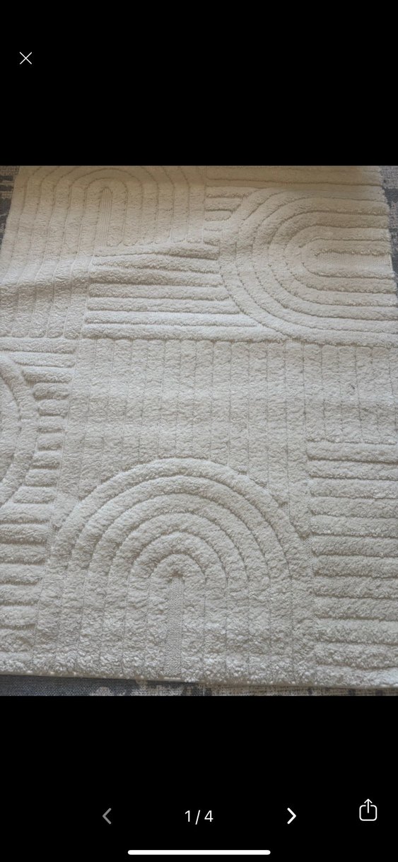 Bu modern halı, beyaz sade ve şık bir görünüm sunar. Her odaya yumuşak ve modern bir dokunuş katar.