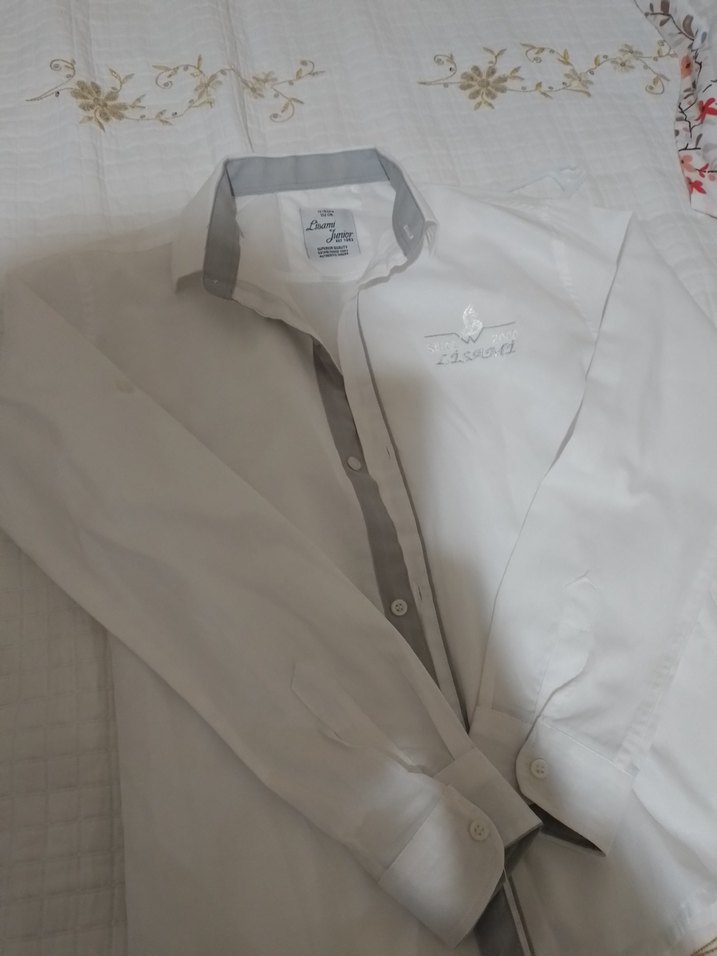 Gri Detaylı Beyaz Uzun Kollu Erkek cocuk Gömlek