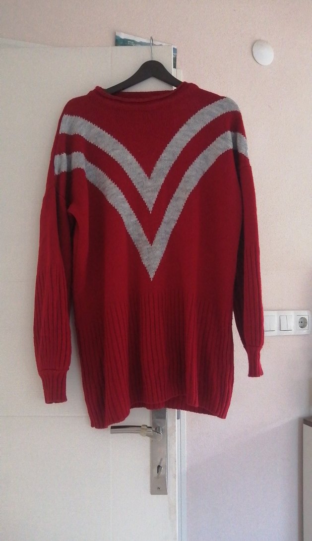 Gri detaylı kırmızı V yaka triko kazak, uzun kollu ve rahat kesimdir. Günlük kullanıma uygun, konforlu ve şık bir modeldir. Temiz kullandım sorunu yoktur L-Xl uyumlu