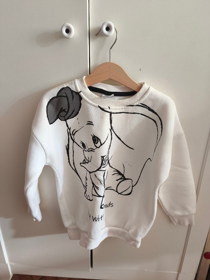 Kız çocuk sweatshirt, yuvarlak yaka ve uzun kolludur. Rahat kesimli, yumuşak kumaştan üretilmiş, beyaz üzerine gri fil baskılıdır. İçi şarfonlu 3 iplik kumaştır. Sıcak tutar. Hiç kullanılmadı.Sadece yıkandı. lütfen ölçülere bakarak alım yapınız
