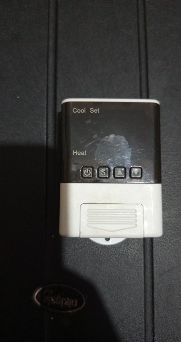 Isı ve soğuk ayarları bulunan gri dijital termostat, kolay sıcaklık kontrolü için düğmeler içerir. ️ ürün uzun zamandır depoda duruyordu ekranında anlamadım bir leke var yarın hiç kullanılmadı sensör kısmına daralan makaronunu ben yapıştırdım daha sağlam olsun diye fakat kullanmadım