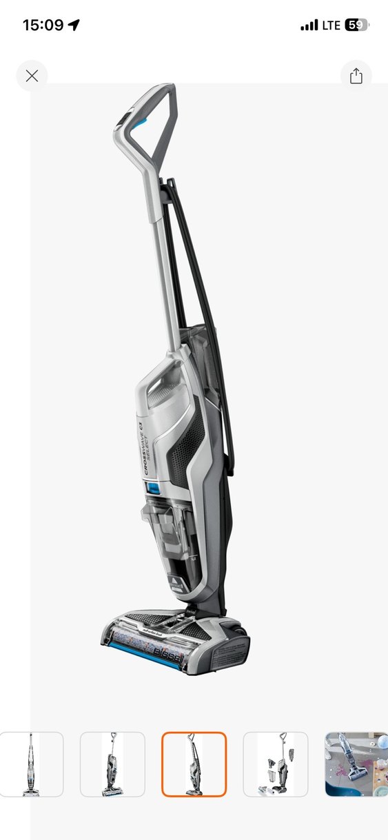 Gri dikey elektrikli süpürge, şeffaf toz haznesi ve ergonomik sapıyla kolay kullanım sağlar.