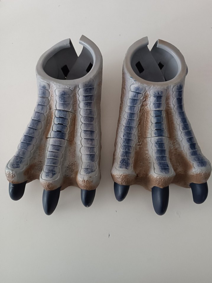 Normal ayakkabıların üzerine giyilebilen büyük dinozor ayakları. Ses çıkarabilir, pille çalışır. Taban ve arka kısım - deneyimlerimize göre botların üzerine en iyi şekilde oturuyor. Kostüm veya Cadılar Bayramı kostümünün bir parçası olarak mükemmel.