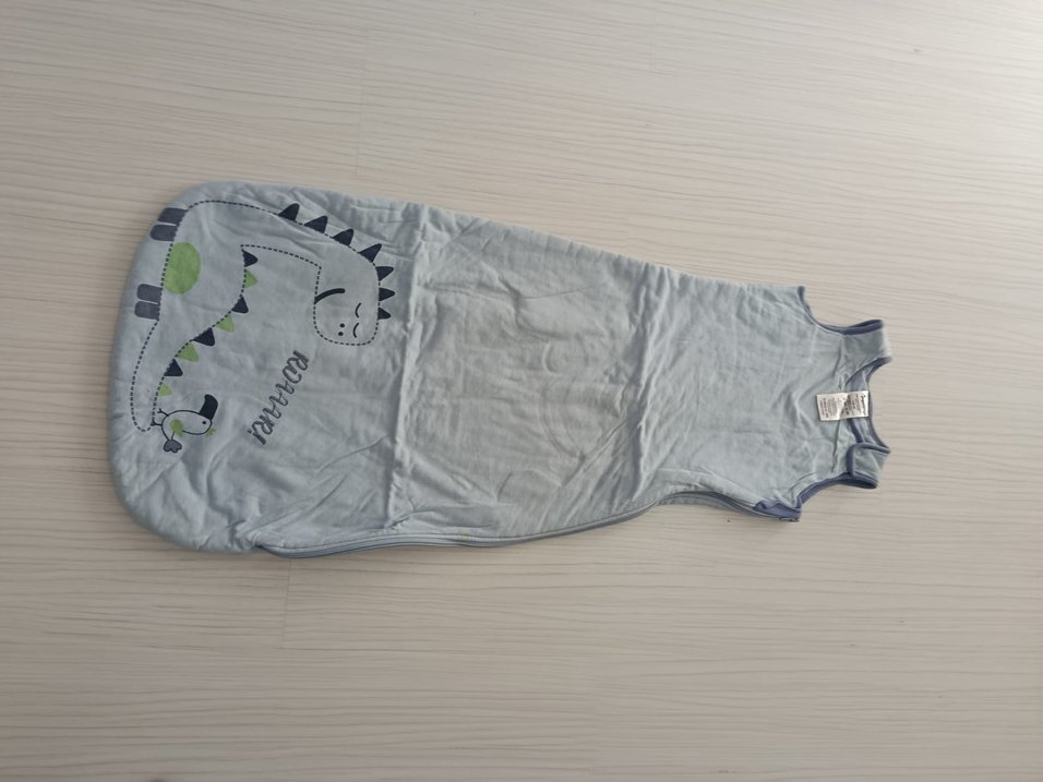Bu gri çocuk uyku tulumu, yumuşak ve sıcak kumaştan üretilmiş dinozor baskısına sahiptir. Üzerinde 'ROAAARA' yazısı bulunmaktadır.