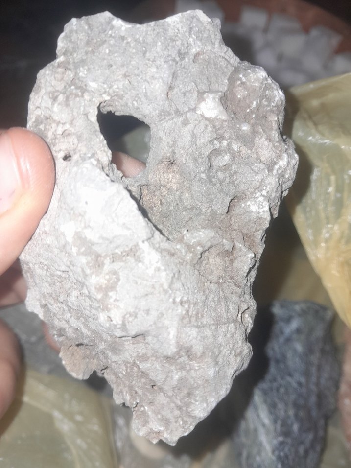 dokulu, doğal gri taştan yapılmış, benzersiz deliklere sahip dekoratif obje. Ev dekoruna rustik bir dokunuş k