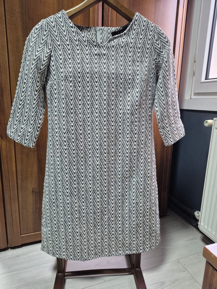 Gri renkte, V yaka ve brokar kollu klasik elbise PUDRA marka ,etiketiyle duruyor. 2 koltuk arası 47 cm koltuk altından uzunluk 77 cm koltuk omuzdan 45 cm