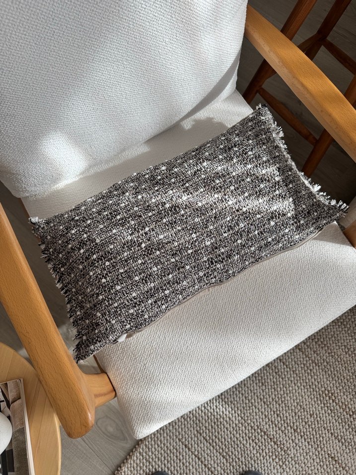 Modern tarzda, dokulu gri renkli ve desen içermeyen bu yastık, oturma alanlarına sıcaklık katar 2 adet ve bir ay kadar kullanıldı ihtiyaç fazlası