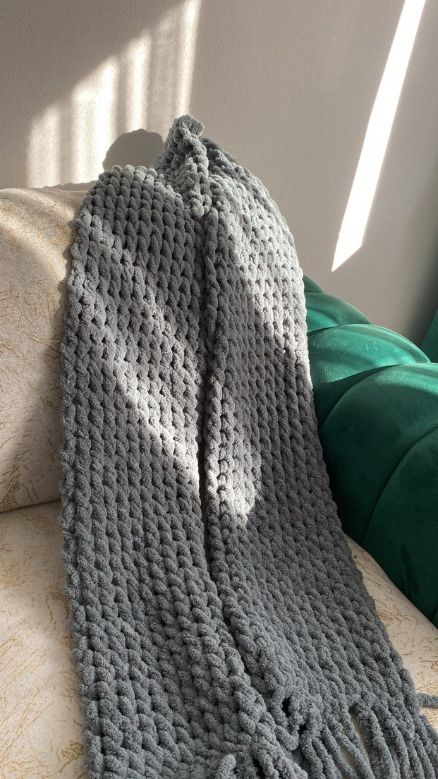 Gri Dokulu Örgü Battaniye