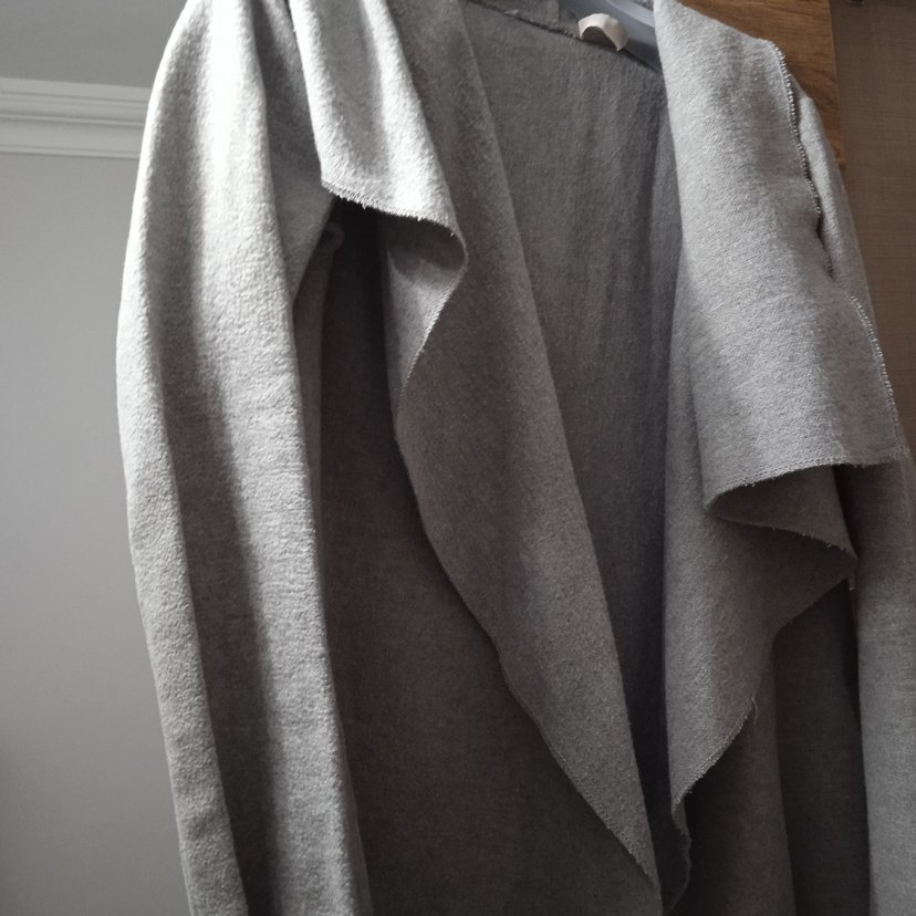 Gri renkli, dökümlü ve bol kesim kabanı. Notlu yaka ve uzun kollu olup, yumuşak keten kumaştan yapılmıştır. Rahat ve günlük kullanıma uygundur.