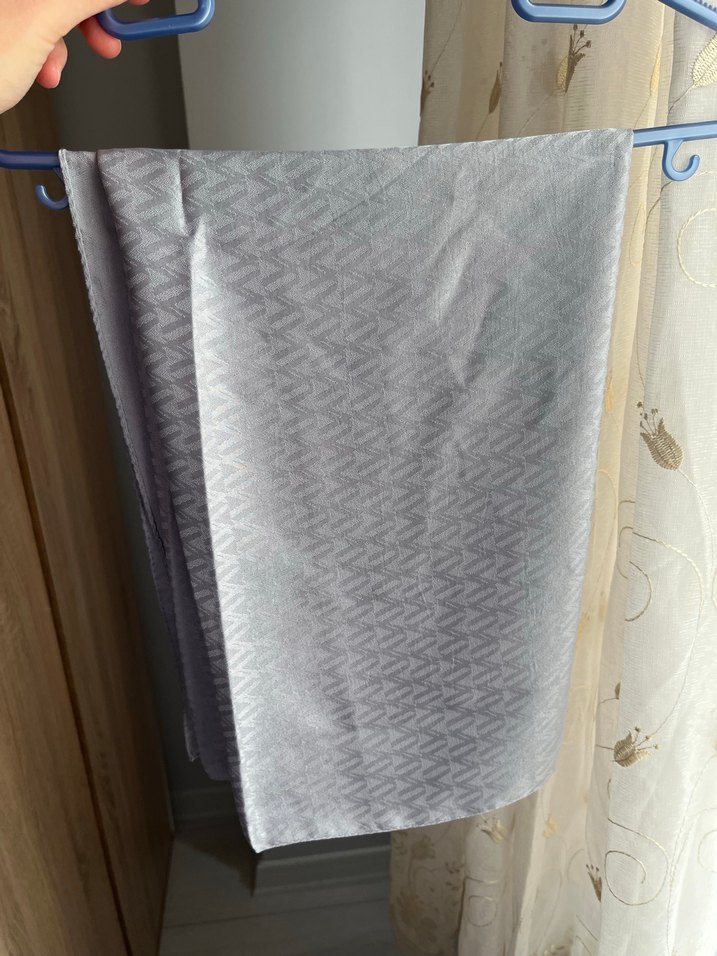 Yumuşak sentetik kumaştan yapılmış, gri dökümlü kadın şalı. Minimalist ve modaya uygun görünüm için ince desenli.