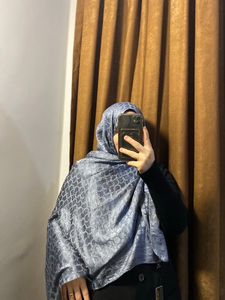 Kadınlar için gri, dökümlü ve ipeksi dokulu şal. Sokak stiline uygun, rahat ve modest bir görünüm sunar.