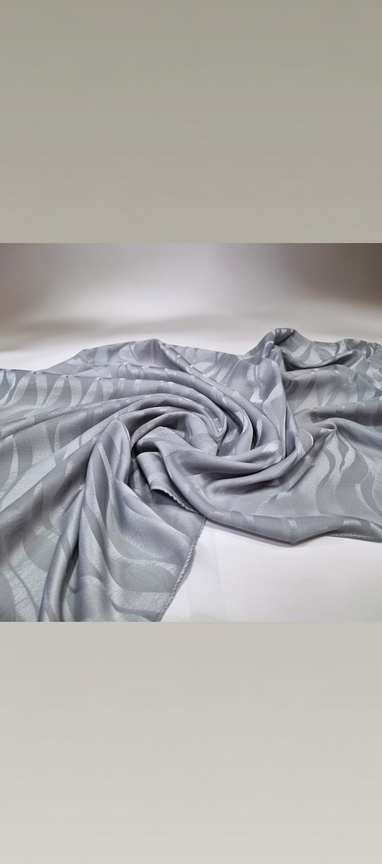 Dökümlü tasarıma sahip kadın şal, yumuşak sentetik kumaştan yapılmıştır ve gri desenlidir. Minimalist tarz için uygundur.
