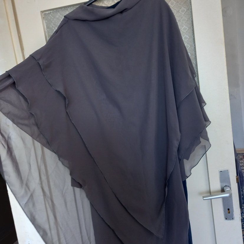 Dökümlü tasarıma sahip gri sufle yumuşak sentetik kumaştan üretilmiştir, hiç bir kusuru yoktur