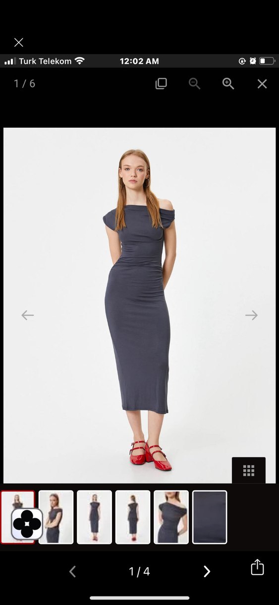 Gri Drapeli asimetrik yaka Uzun Elbise