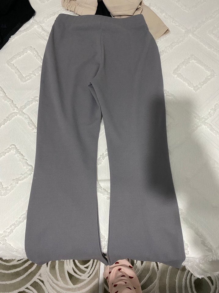 Drapeli tasarıma sahip, uzun boylu ve gri kumaş pantolon. Normcore ve athleisure tarzlarını günlük kullanıma uygun şekilde birleştirir.