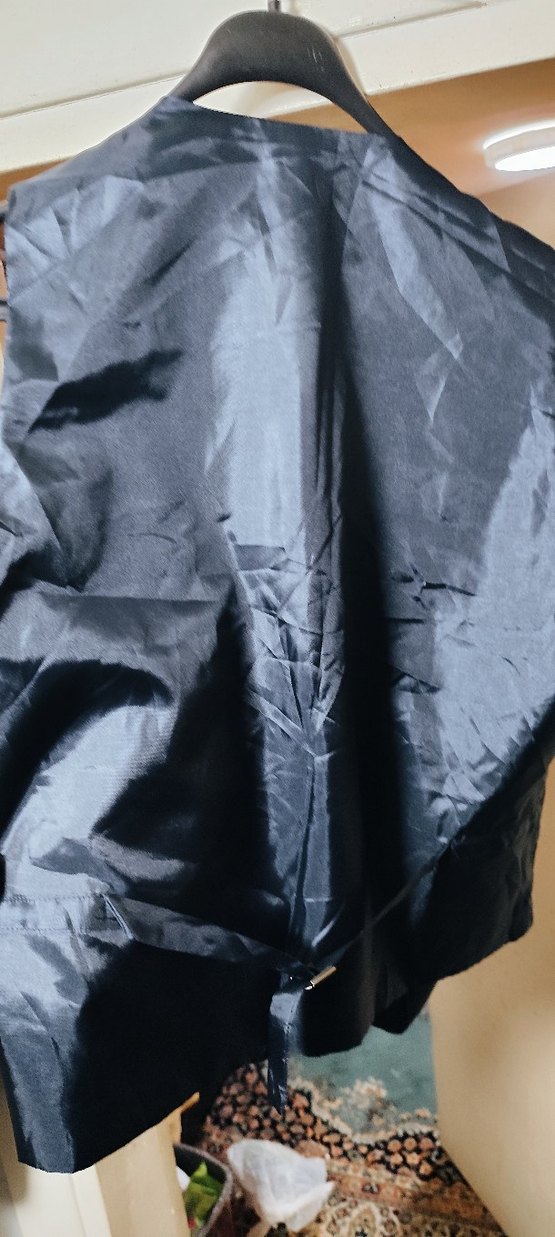 Drapeli, kolsuz ve u ceketi, notched lapel yaka ile gri renkte, sentetik kumaştan, dış mekan kullanımı için uygun, gotik avant-garde tarzda.