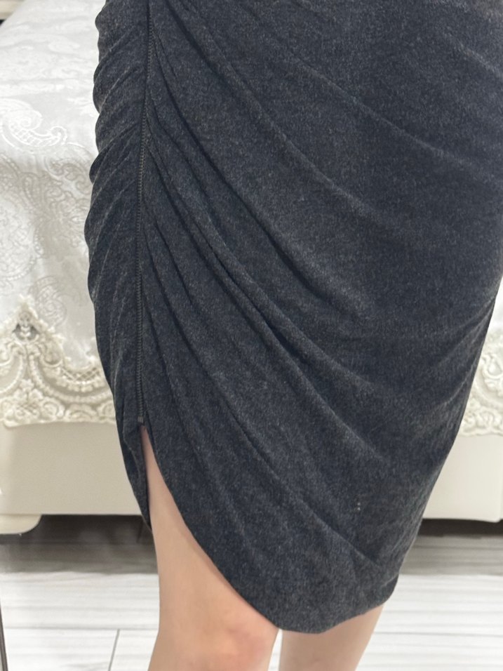 Gri renkte, drapeli ve midi boyda . Yumuşak sentetik kumaştan üretilmiş, klasik şıklık ve romantik akşamlar için uygun.